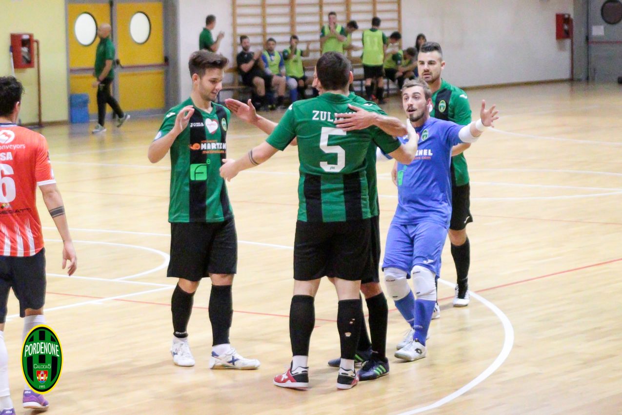 Il pari va evidentemente stretto agli ospiti che già a 6' dalla fine iniziano a giocare con portiere di movimento, una scelta che favorisce il vantaggio dei ramarri al 16'35'' con capitan Milanese; un goal che fa impazzire tutto il pubblico neroverde che inizia così a sognare l'impresa storica.